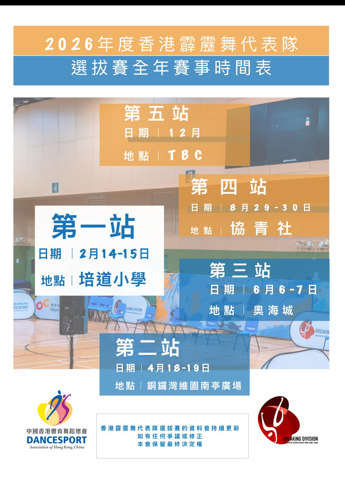 2026 全年賽事時間表 - 香港霹靂舞代表隊選拔賽